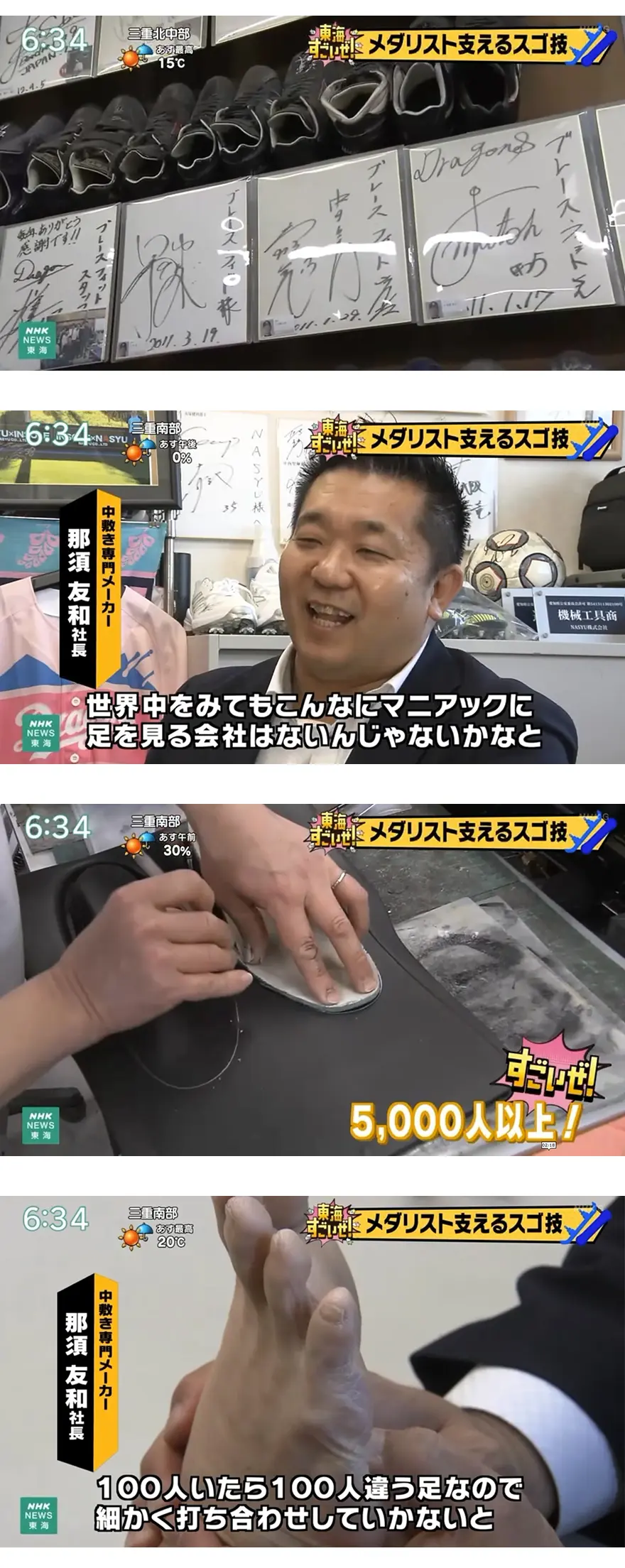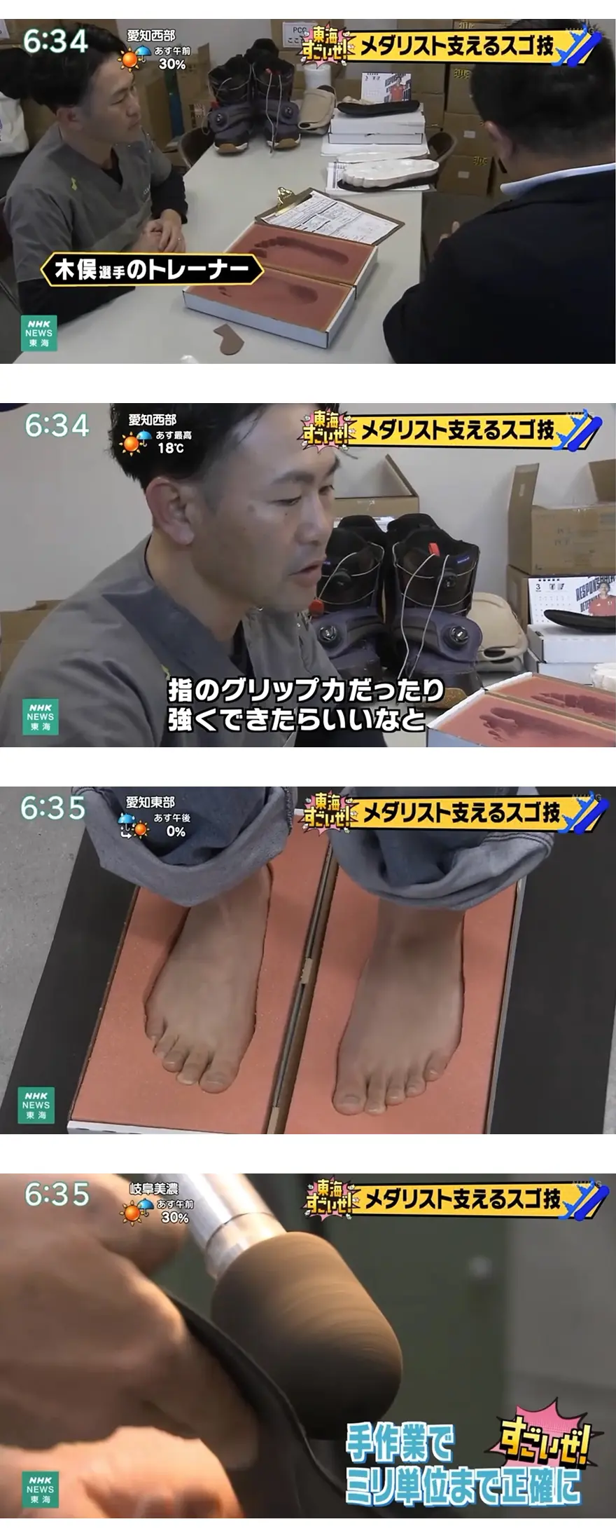 番組内では、競技力を支える足元の重要性や、選手一人ひとりに合わせたインソールづくりについて取り上げていただきました。